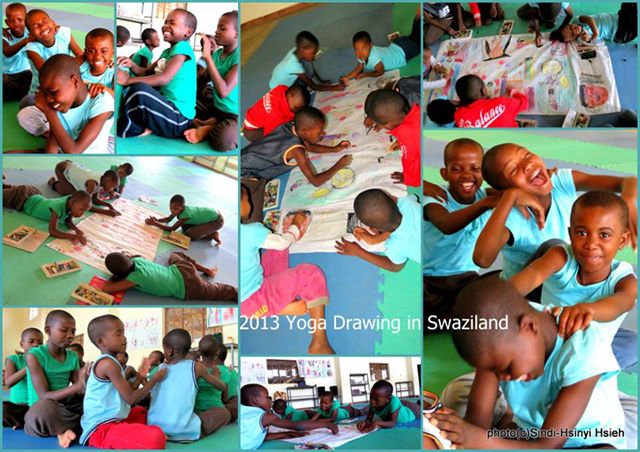 Yoga Drawing in Swaziland combines with making art works, drawing and kids’ yoga.