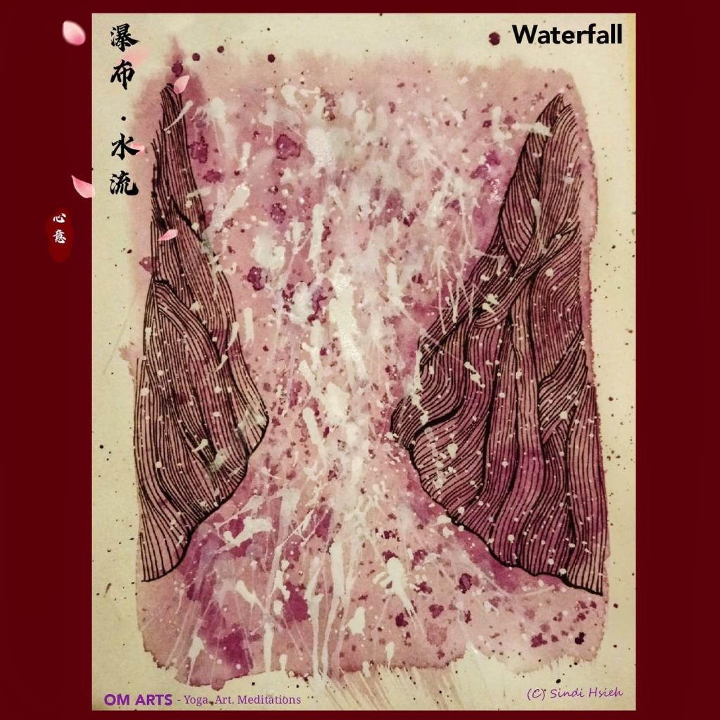 💜Sahasrara Chakra Series- 【Waterfall. 瀑布.水流】 . 💜 “Just let go – and fall like a little waterfall.” – Bob Ross . 💜 I love listening to the sounds and the power of pounding water, whether it is a river, ocean waves or a waterfall. . (Bamboo brush,Sakura Watercolor, A4 paper)