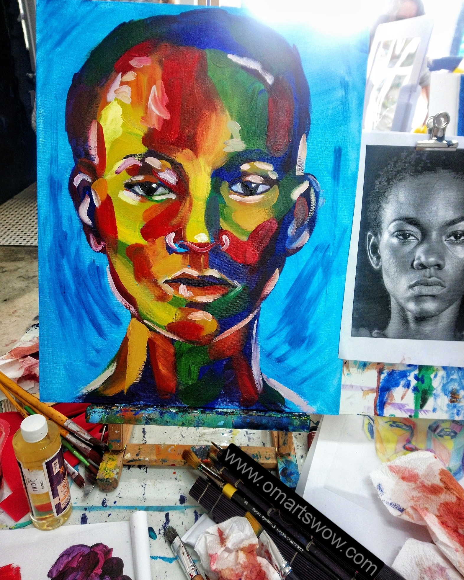 “Your painting has got something there, thatβs why I love it.” ,the teacher said proudly. “What! Even her eye is one up one down?” I responded without thinking. A fellow artist , wearing mask, looked at me straight like there were thousand unspoken words in her eyes. Suddenly, I noticed “Gee! My critical inner critic is awaken β¦β¦again.” Immediately, I said thank you with a smile to the teacher.