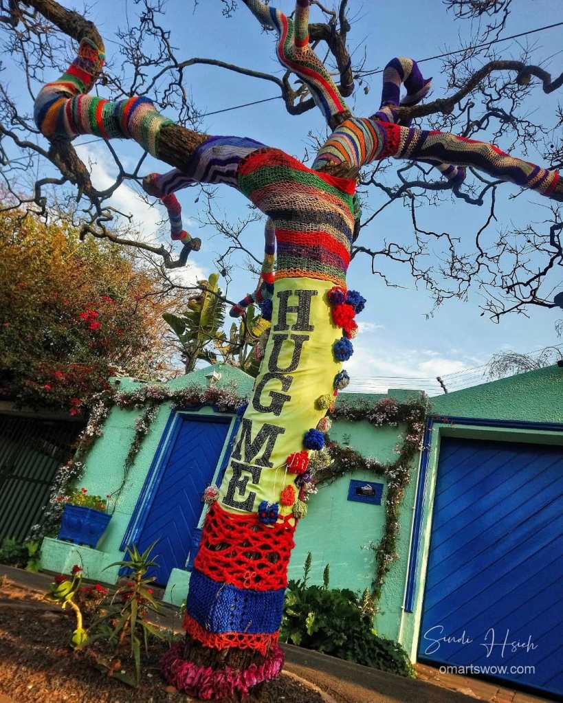 🌳There is no limit of being creative. This is a lovely surprise ,spotting Yarn Bombing (the art of crochet and knit graffiti) , when we drove pass a residential area in Melville and it’s so worth to reverse the car all the way uphill (almost 100 meter) 😂 to take this photo.🌸🌳 The owner was laughing while seeing us reversing the car all the way up and seeing me jumping out of/in the car for taking photos in a flash. 😆.