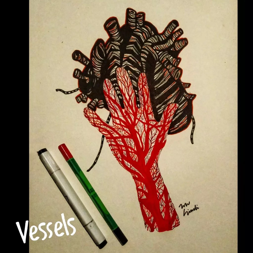 3: #vessel #inktober #inktober2021 . 🌻”The body is your temple. Keep it pure and clean for the soul to reside in.” – B.K.S. Iyengar . 🌻While drawing these blood vessels & heart, “seeing” them sending blood to keep all organs functioning well in our body, I just felt so grateful for being healthy & alive.🙏