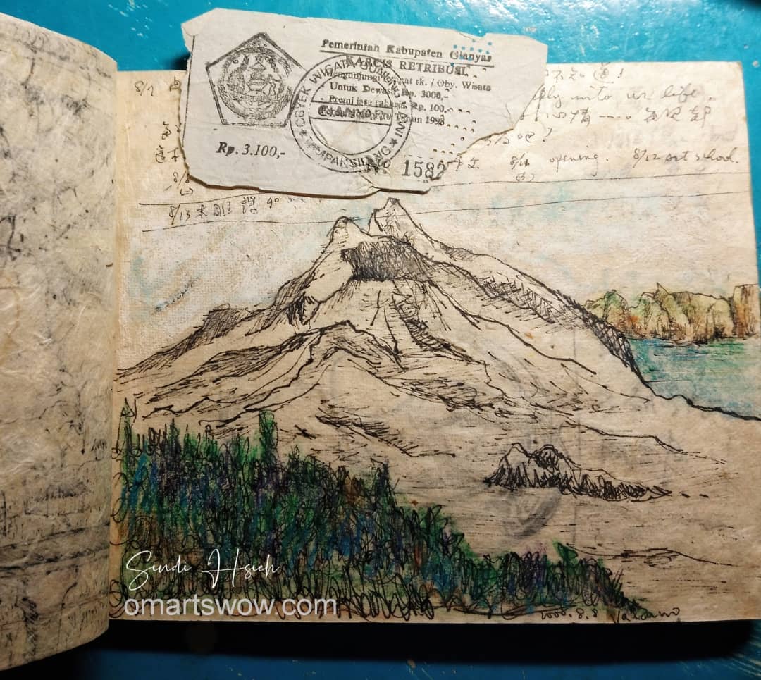 Found my old travel journal accidentally and saw this sketch which was drawn in 2000 (yeap, that long ago.) when I traveled to Bali with gal pals the first time. We were somewhere in Gunung Batur watching Batur Lake at a coffee shop and watching how the local vendors doing business with tourists as well.![]()