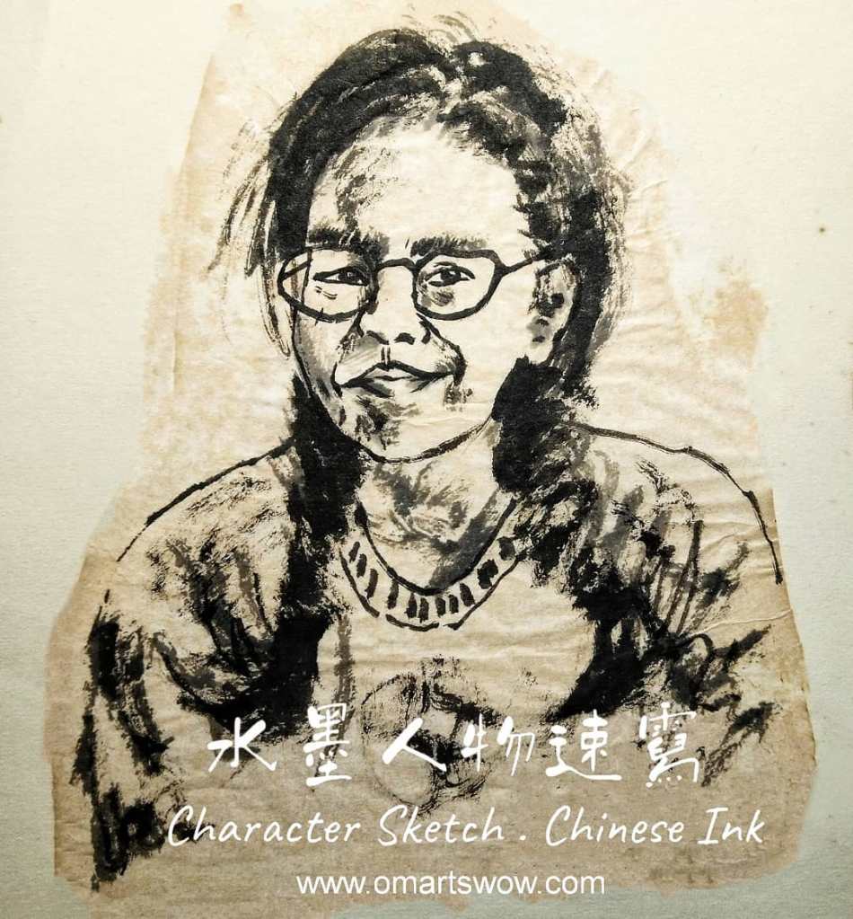 Character sketching with brush & Chinese ink.