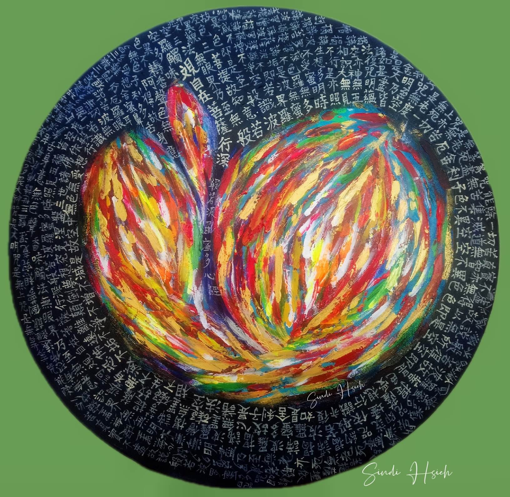 祈願此流動的金光、彩色之光與心經抄寫,療癒、滋養我們,並提醒我們內在本有的神性。
